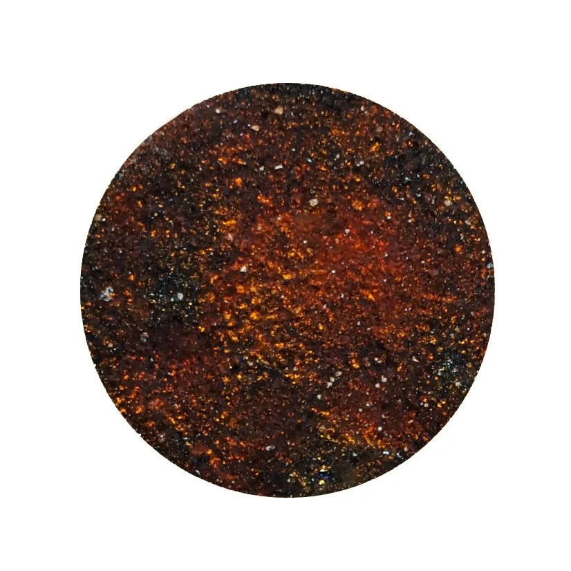 Consider, for instance, two metallic effect enamels with a dark undertone, such as enamel No. 15 and No. 9. Left unsanded, they manifest a robust effect on the surface, while, after the smoothing process, they will look like a starry sky. This dynamic shift in appearance, reminiscent of aventurine glass, unveils an intriguing dimension, enriching the possibilities available to enameling enthusiasts. In terms of uniformity and intensity of the result after sanding, my preference leans towards transparent shimmer enamels with a dark undertone.
