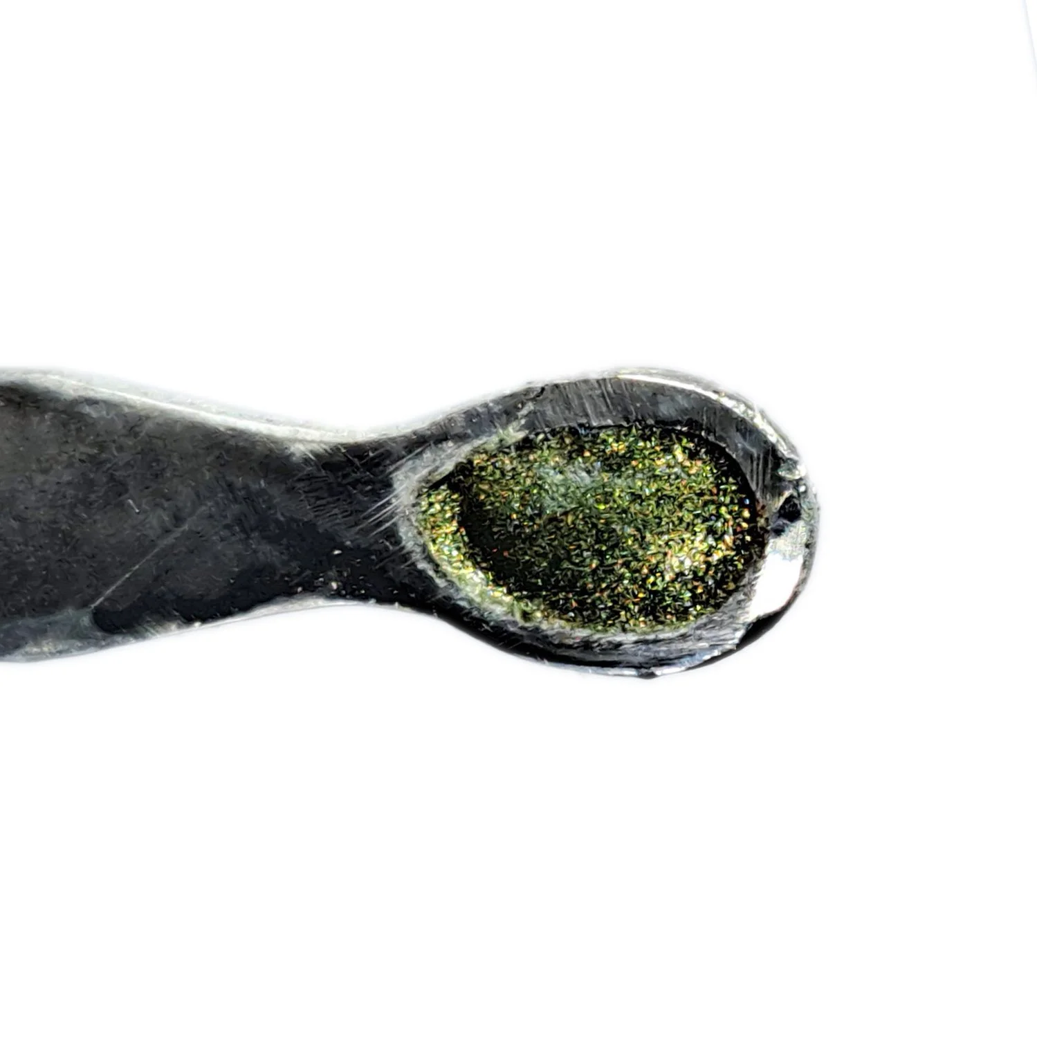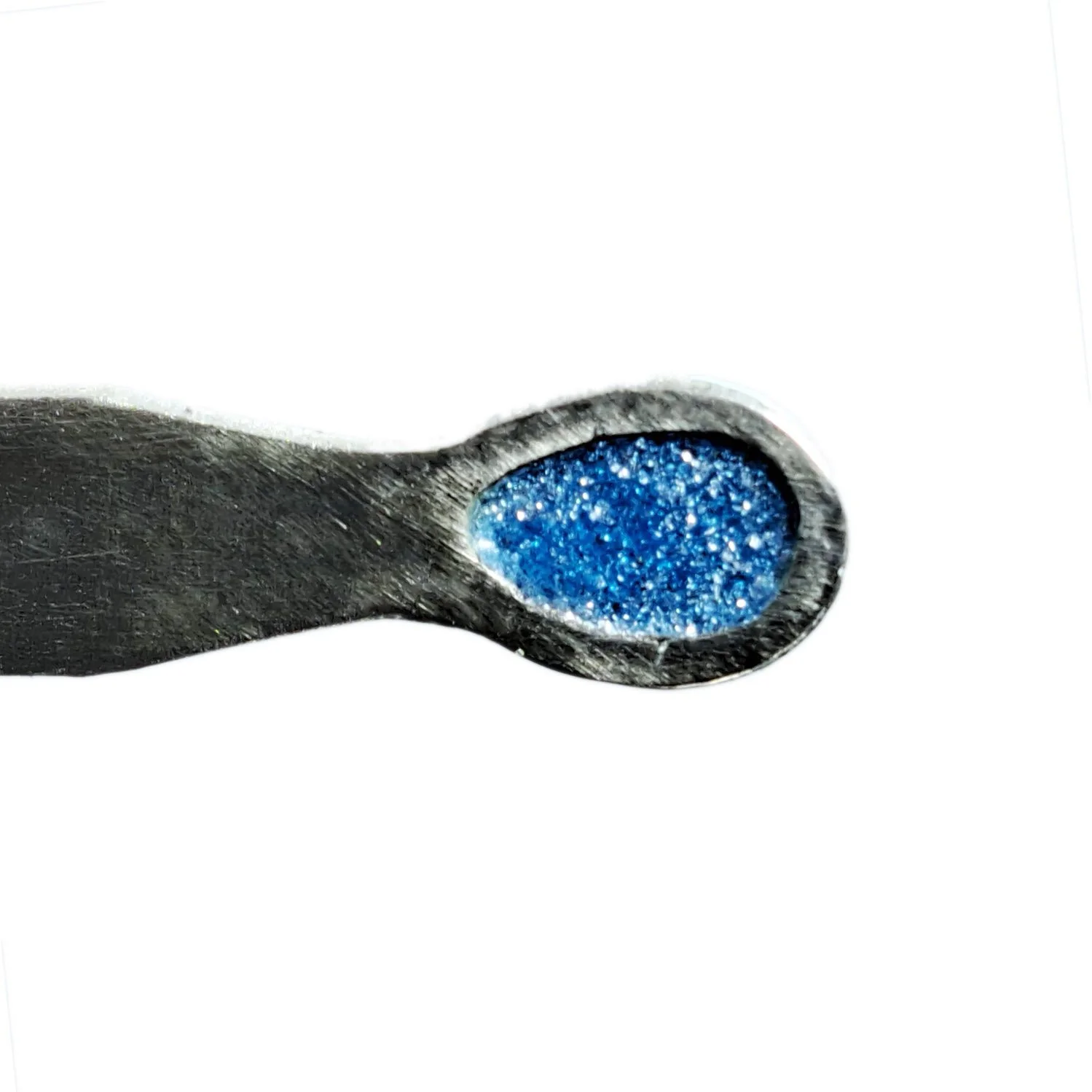 In scenarios where you aim to incorporate these enamels on metal alongside other enamel types, a different approach is recommended. Apply them concurrently with the other enamels. If you apply them with a wet packing method be careful not to add too much water or the glitter will migrate to other areas of your work. During the first firings, prioritize the overall aesthetics of the piece without immediate concern for achieving the special effect that characterizes the enamel you are using. Address the other enamels, focusing on their layers and visual appeal. When you achieve the result you want with the other enamels, apply an additional layer of Milton Bridge’s metallic effect enamels during the final stage. Dedicate a firing exclusively to these enamels to ensure the realization of the desired effect.